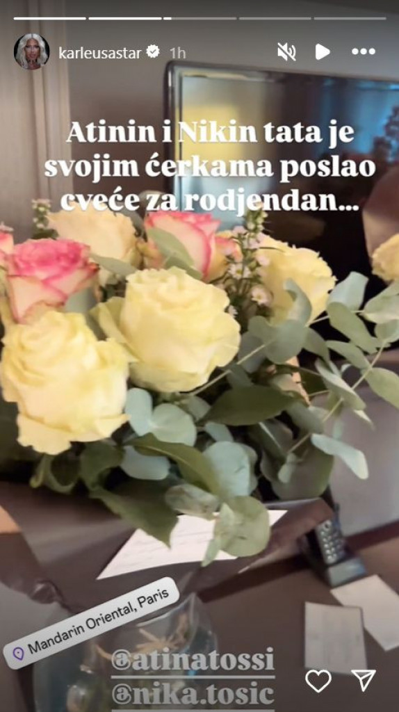 Ovaj gest podelila je Jelena uz opis: “Atinin i Nikin tata je svojim ćerkama poslao cveće za rođendan”.