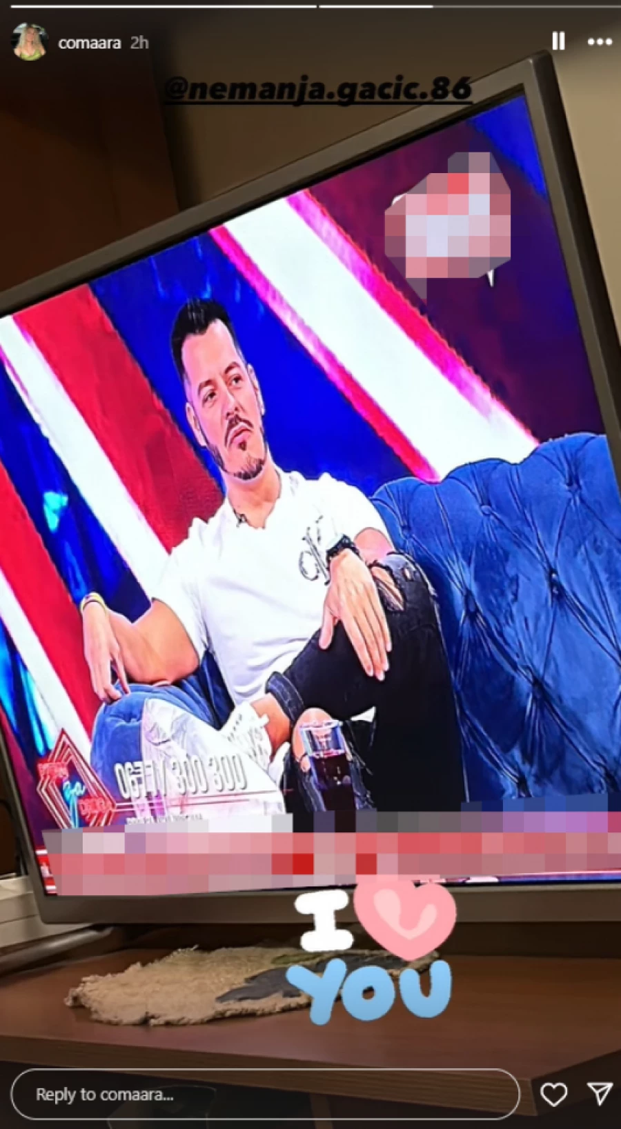 Gačić je bio gost u jednoj domaćoj emisiji koja se bavi popularnim rijalitijem, a trudna Milica Veličković netremice je posmatrala bivšeg takmičara rijalitija.
