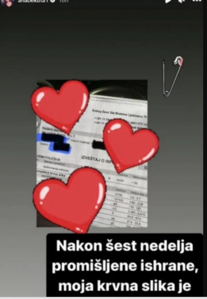 Nakon šest nedelja promišljene ishrane moja krvna slika je besprekorna – napisala je ispod slike sa rezultatima, koje je dala na uvid svima koji su želeli da pogledaju.