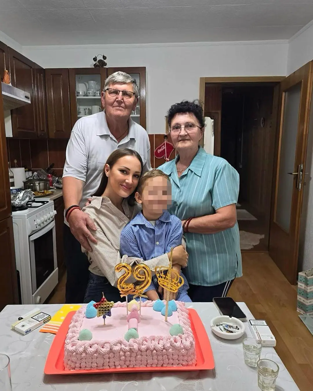 Prijovićka je objavila na društvenim mrežama da je oduvala svećice uz sina, baku, dedu, mamu i tatu. Podelila je fotografiju na kojoj se vidi kako sina drži u naručju, dok iza njih stoje njeni baka i deda.