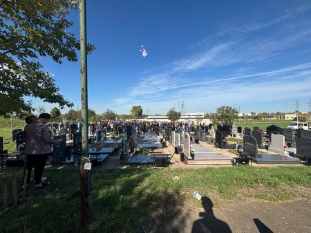 Kako javlja naš reporter, na groblje su stigli beli i ljubičasti baloni.