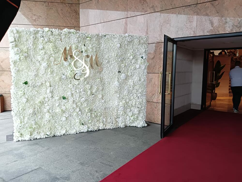 Ispred ulaza nalazi se zid sa belim ružama i zlatnim slovima ispisani su njihovi inicijali. Tu se nalazi i crveni tepih kojim će prošetati mladenci.