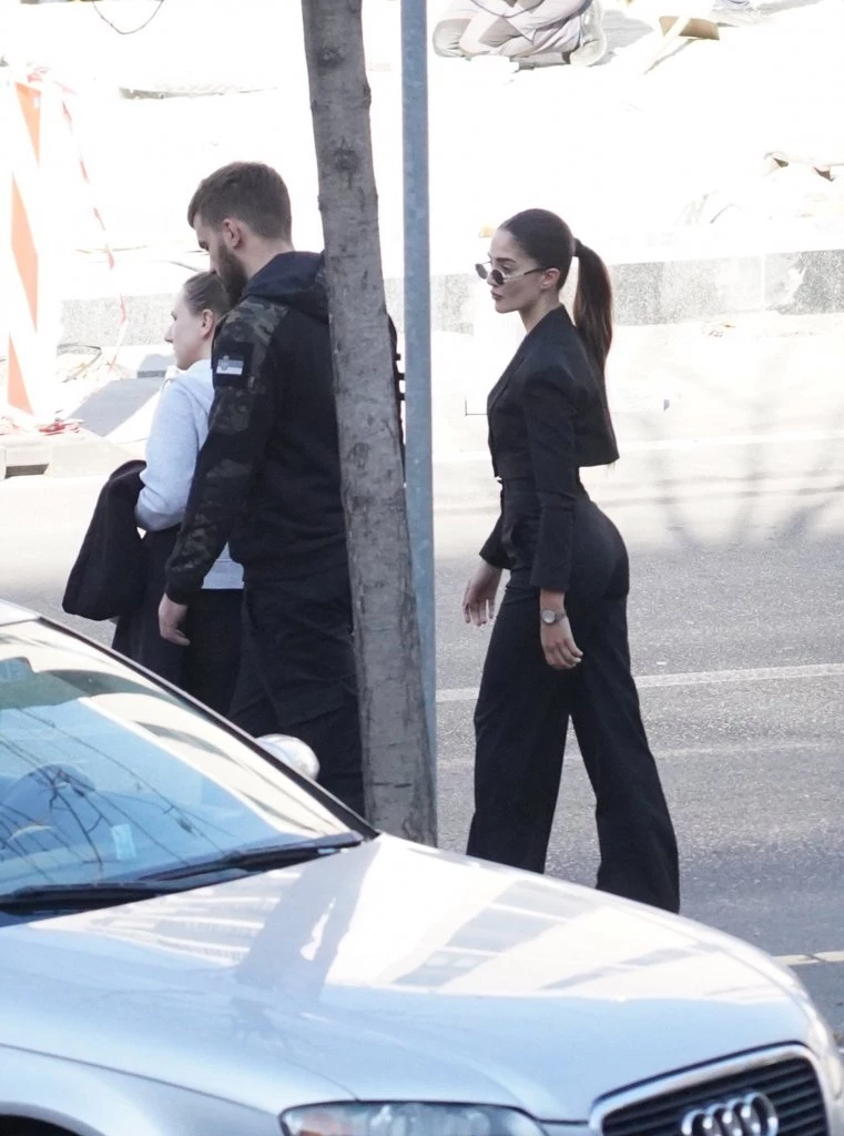 Tog dana, rijaliti zvezda je nosila beli komplet sa bledozelenim šarama, kosu je vezala u rep, a lice je, takođe, sakrila naočarama za sunce.