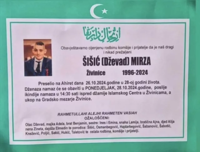 Živinice je potresla tužna vijest o preranoj smrti Mirze Šišića, koji nas je napustio u svojoj 28. godini života.