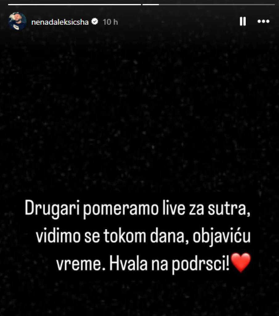 Nenad Aleksić Ša je na svom Instagram profilu najavio da će organizovati TikTok live, ali je potom objavio da je prinuđen da otkaže ovaj događaj. Odmah su počele da kruže različite teorije o razlozima otkazivanja – mnogi su pretpostavljali da je razlog zdravstveno stanje njegove devojke Mione Jovanović, jer su fanovi primetili da je ona drastično smršala.