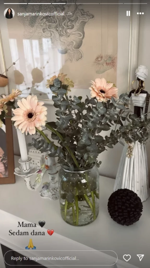 Sedam dana nakon ovog gubitka, Sanja je odlučila da ispuni svoj dom omiljenim cvećem svoje majke, kao znak sećanja i poštovanja prema njenom ukusu. Ovaj gest jasno pokazuje koliko je Sanja bila vezana za svoju majku i kako je želela da joj oda počast.