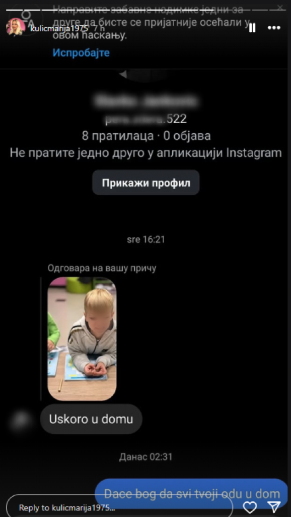 Naime, neko od njihovih pratilaca im je napisao na fotografiji Miljaninog sina, Željka Kulić da će uskoro završiti u domu nza nezbrinutu decu, aludirajući da će im socijalna služba ga uzeti.