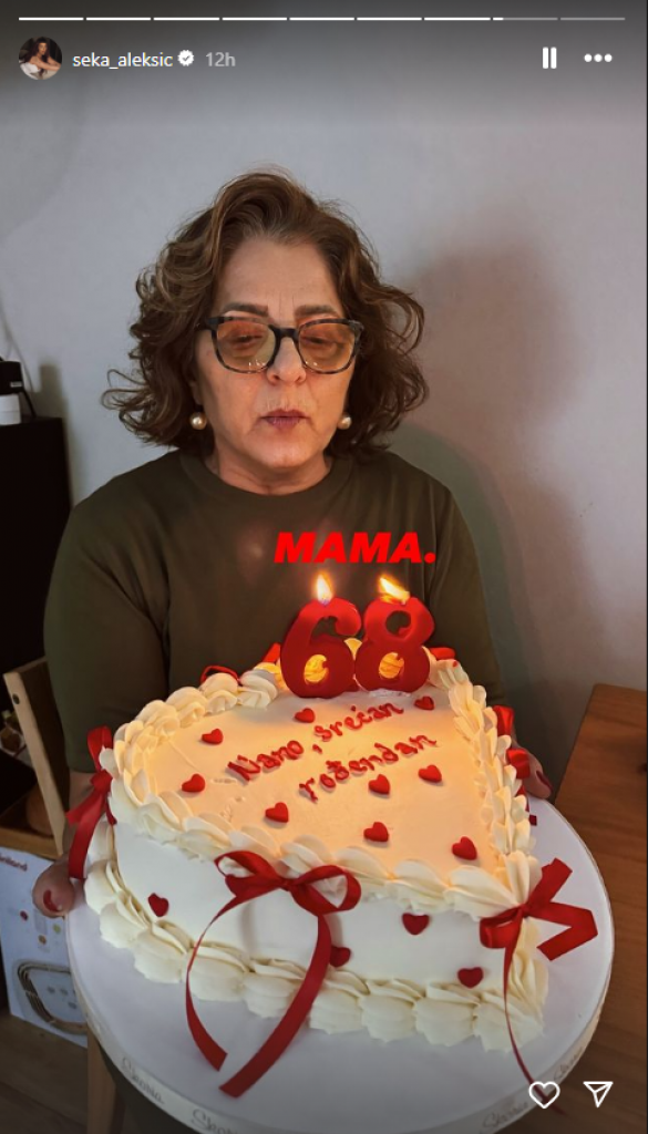 Ibrima Aleksić, majka folkerke Seke Aleksić, juče je proslavila svoj 68. rođendan. Pevačica je podelila prizor iz porodičnog doma, a njeni fanovi mogli su da vide kako njena majka duva svećice sa posebno pripremljene torte u obliku srca. Posvetu su pisali naslednici Seke Aleksić.