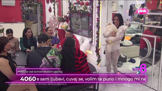 – Dobro veče, drago mi je što ćemo imati vreme da se družimo. Svima sam se javila, biće dana za megdana. Došlala sam da se družim sa mojim Markom, jer ga mnogo volim, a sa vama ću da se pozabavim kasnije – rekla je Sanja.