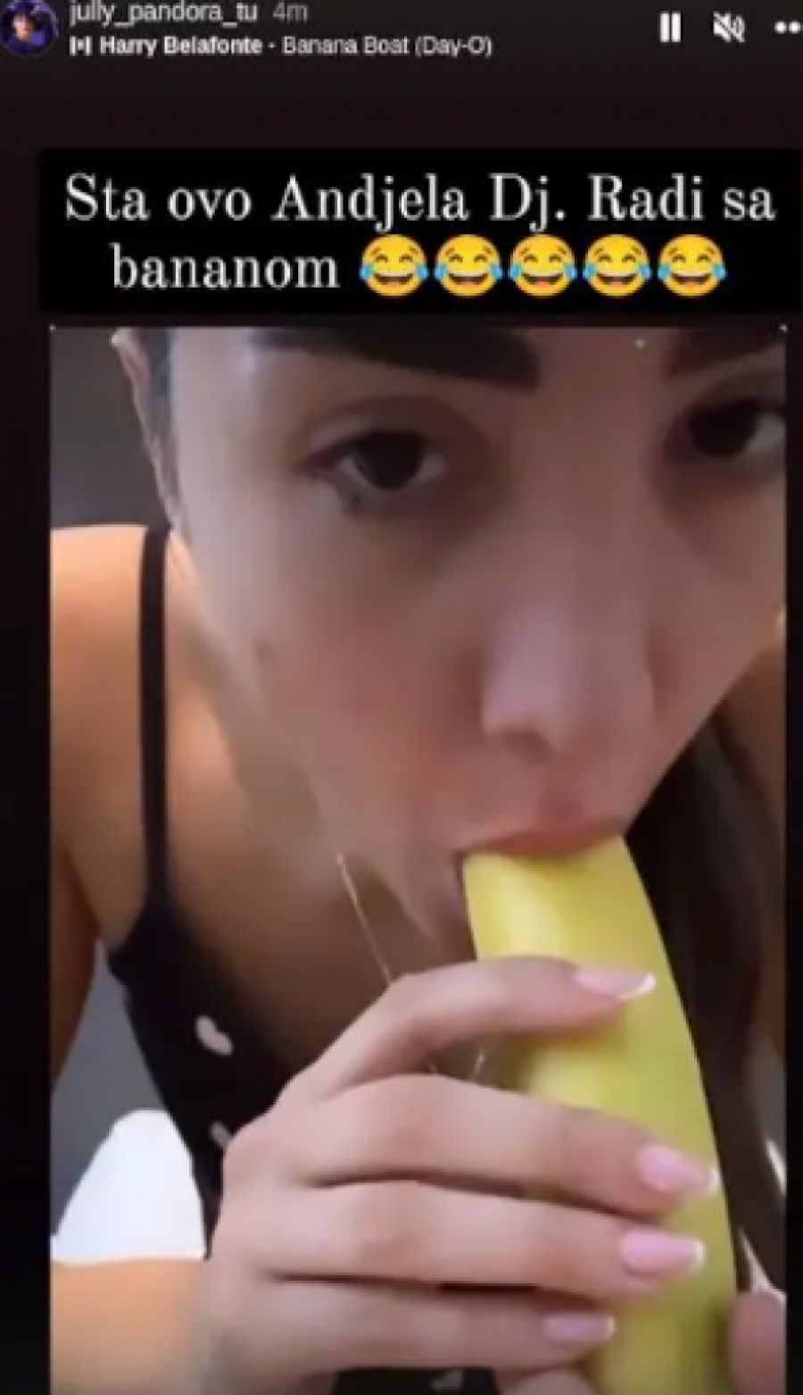 Podsećamo, učesnica rijalitija “Elita” Anđela Đuričić, dok nije pokazala pravo lice, nosila je epitet smerne i nežne devojke. Međutim, kako je rasturila vanbračnu zajednicu Zvezdana Slavnića i Ane Ćurčić o njoj su počele da kruže razne priče. Međutim, ono što je šokiralo sve jeste kadar iz njenog snimka kada se pojavio na mrežama gde stavlja bananu u usta što su joj mnogi zamerili u komentarima.