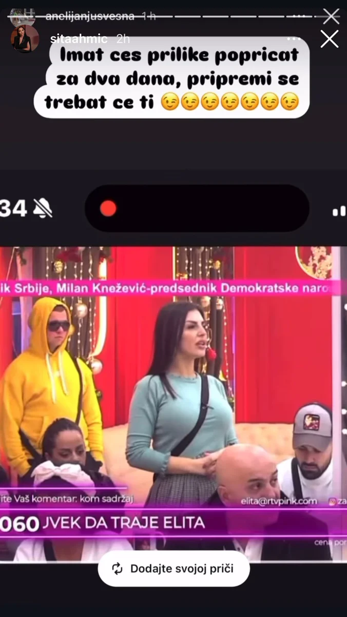 Anelina sestra, Sita Ahmić već je u nekoliko navrata komentarisala Enu putem svojih storija na Instagram profilu, te se danas ponovo oglasila.