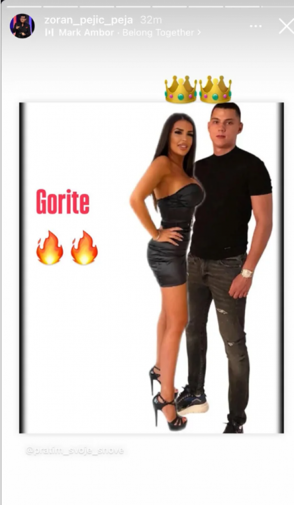 – Gorite – poručio je on kratko uz emotikone vatre, a preko dodao pesmu “Pripadaju zajedno”.