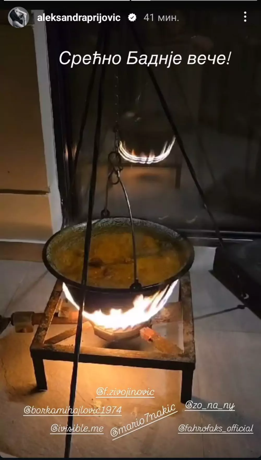 Aleksandra Prijović večeras se oglasila na Instagramu gde je svojim pratiocima čestitala Badnje veče. Ona je u objavi označila majku Filipa Živojinovića koja je očigledno ugostila sina i snajku.