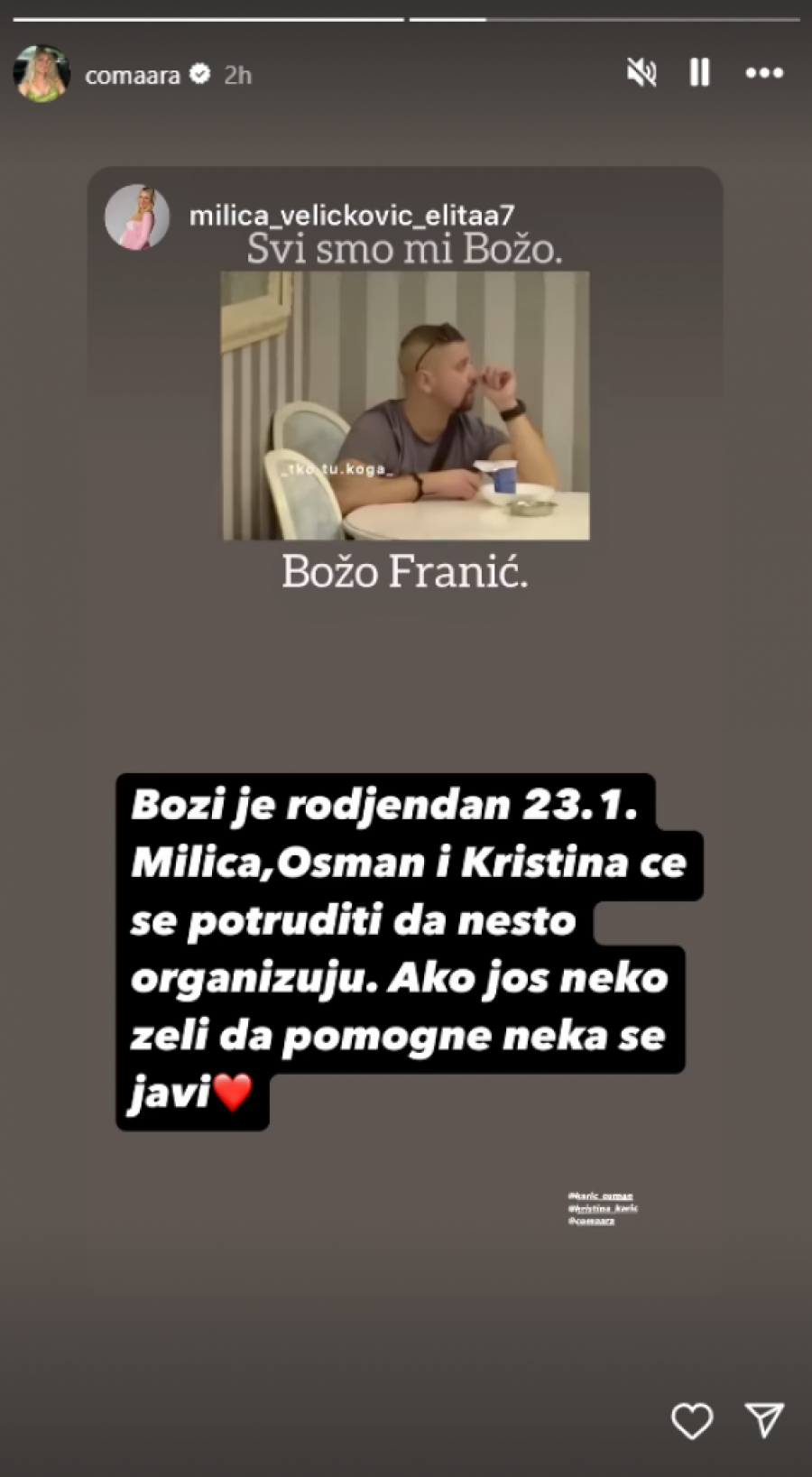 Sa titulom majke, Milica ističe da je ovo najlepša, ali i najzahtevnija uloga koju je ikada imala. Ona koristi retke trenutke slobodnog vremena da se obrati javnosti putem društvenih mreža, kako bi podelila svoja osećanja o majčinstvu i pružila podršku učesnicima rijalitija “Elita”. Takođe, Milica je najavila da će zajedno sa Osmanom i Kristinom Karić poslati poklon takmičaru Boži Franiću povodom njegovog rođendana, pozivajući i svoje pratioce da učestvuju u ovoj dirljivoj misiji.
