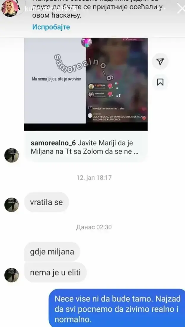 – Neće više da bude tamo. Najzad da svi počnemo da živimo realno i normalno – naisala je Marija, dodavši: