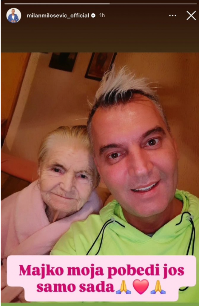 Voditelj “Elite 8” Milan Milošević, koji je izuzetno vezan za svoju majku, zabrinuo je sinoć svoje fanove na društvenoj mreži Instagram. Naime, on je podelio fotografiju sa njom i napisao sledeće: