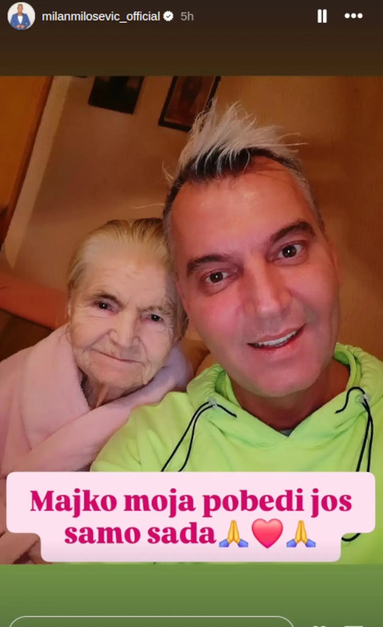 – Majko moja, pobedi još samo sada – napisao je Milan, aludirajući na njenu borbu, što je izazvalo podršku njegovih pratilaca.