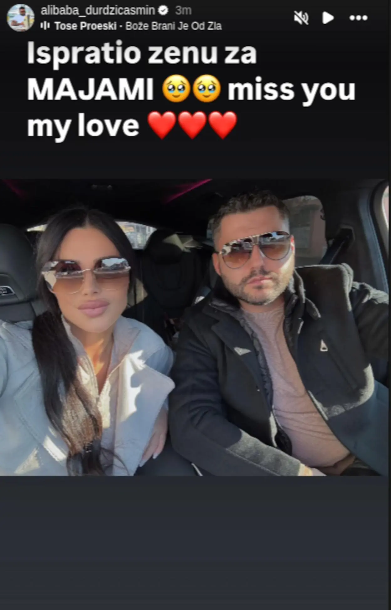 – Ispratio ženu za Majami, miss you my love (nedostaješ mi ljubavi) – napisao je on.