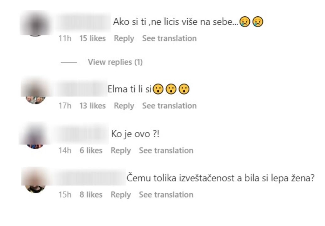“Ne ličiš više na sebe”, “Elma, ti li si”, ” Čemu tolika izveštačenost, bila si prelepa žena”, nizali su se komentari.