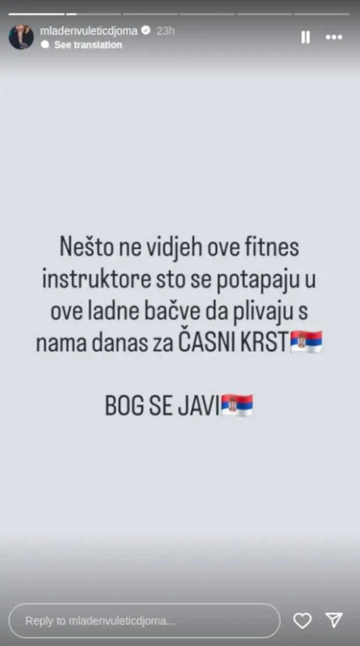 Njegov komentar izazvao je podeljene reakcije – dok su jedni podržali njegovo zalaganje za očuvanje tradicije, drugi su njegovu objavu doživeli kao nepotrebnu provokaciju. Ipak, bez obzira na komentare bilo kakvog tipa, plivanje za Časni krst u našem narodu predstavlja jedan od najvažnijih običaja.