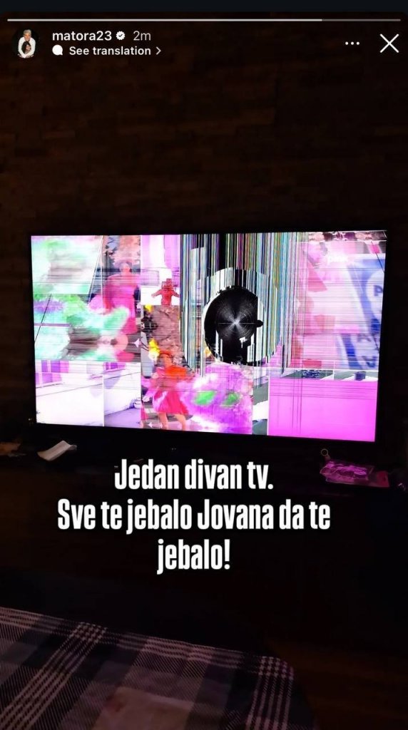 – Jedan divan TV. Sve te je*alo, Jovana, da te je*alo – napisala je ona uz objavu.