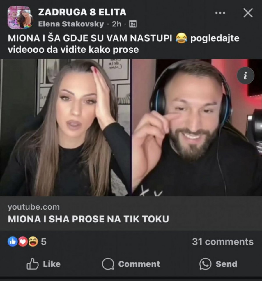 Jedan fan je nedavno snimio deo njihovog poslednjeg lajva i dodao natpis “Ša i Miona završili sa muzičkom karijerom”, što je pokrenulo lavinu reakcija. Mnogi su se složili sa tim mišljenjem i komentarisali na različite načine: “Ugasili su se”, “Miona je govorila da će da grme nastupi, da će hitovi samo da se nižu…”, “Miona se našminka i spremi za lajv, ali iz stana nije izašla, čak nije ni boravila kod svojih roditelja više od sat vremena”, “Počeli su karijeru prosjačenja, Šaban, okej, ali zašto je ovu devojku povukao na dno?”, “Bože, svi iz Zadruge postanu proseci, a evo i pevačica sa karijerama”, “Kakvu su oni karijeru imali?” – samo su neki od komentara koji su se nizali ispod objave.