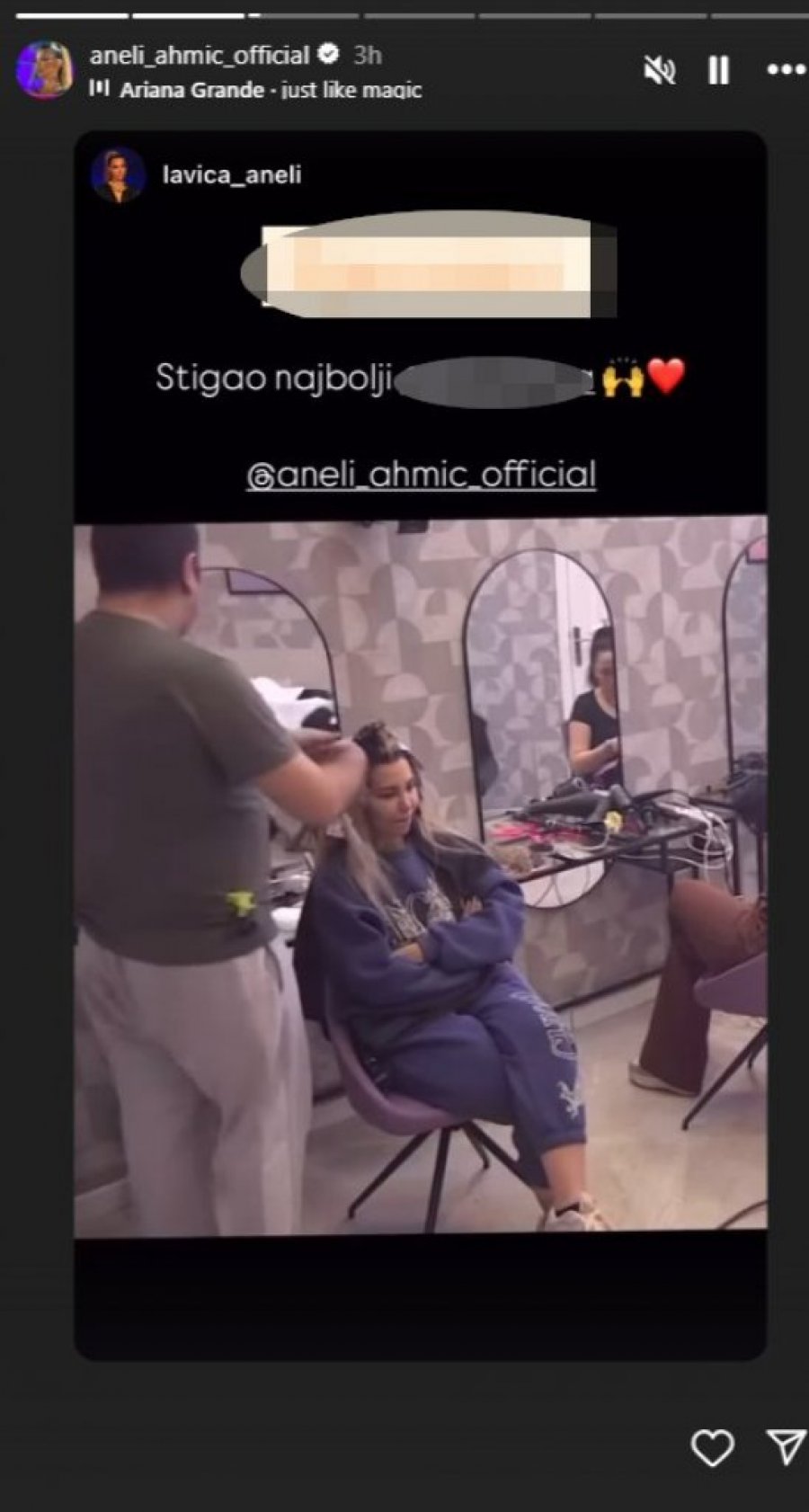 Na jednoj od objava na društvenim mrežama, porodica Aneli Ahmić je pokazala koliko je ona bila srećna zbog posete frizera, koji je došao u Belu kuću uz odobrenje produkcije rijalitija. Snimak iz salona postao je viralan, a na njemu se jasno videlo koliko je Aneli bila uzbuđena i zadovoljna zbog ovog trenutka. Iako je već poznata po tome što se u rijalitiju borila za svoje mesto, ovakvi privatni trenuci otkrivaju nežniju stranu njene ličnosti i pokazuju da, pored svoje jake borbe za bolje sutra, nije zaboravila da uživa i u malim, ali značajnim trenucima sreće u životu.