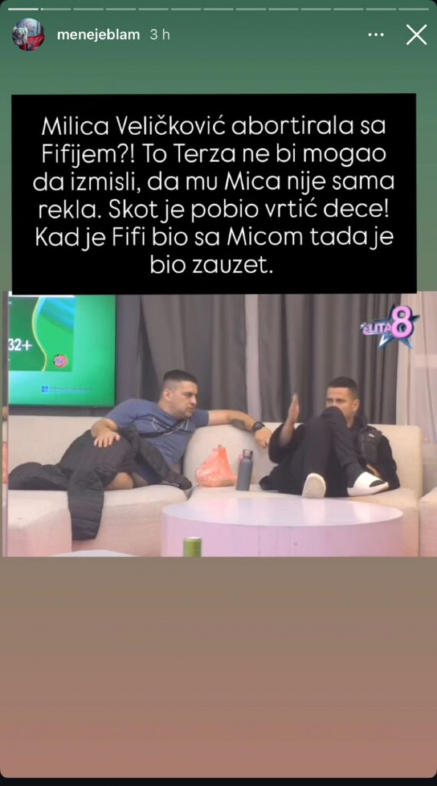 Terza je javno otkrio da je Milica navodno abortirala dete koje je nosila sa poznatim rijaliti igračem Nenadom Marinkovićem Gastozom.