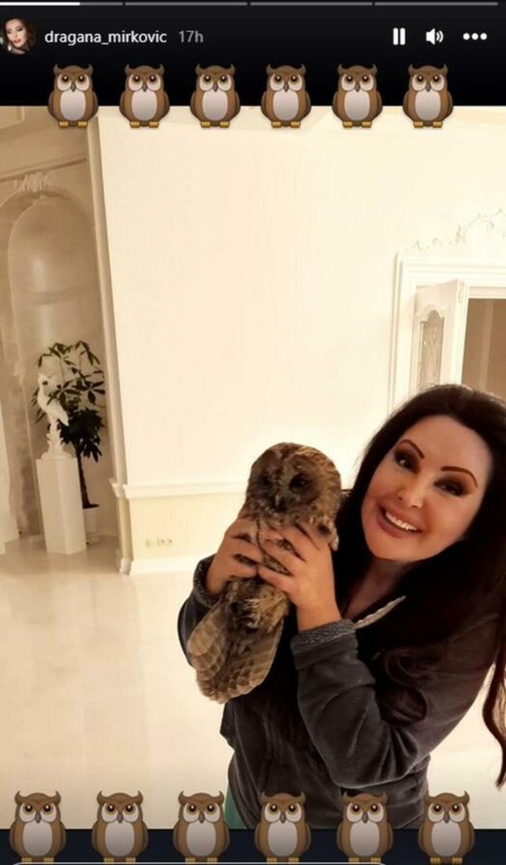Na jednom snimku se vidi Dragana koja drži sovu u rukama i ljubi je, a uz to dodaje: