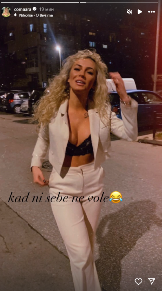 Ne samo da je isprovocirala široku masu sa fotografijom, nego je podelila i pesmu od poznate pevačice Nikolije koja se zove “O bivšima” gde je posebno istakla deo “Šta će kad ni sebe ne vole.”