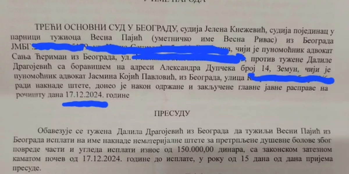 – E moja Dalila, u laži su kratke noge. Ti i tvoji advokati ste se žalili, prolongirali vreme da bi ti pobegla u Ameriku i misliš kao u rijalitiju, kako ovako uz osmeh odvališ notornu laž, tako će i dugovi nestati tvojim begom. Ne, neće, čekaju te ovde u Srbiji, gde ćeš doći kad tad. Možda te Tramp sada potera, pošto si i ti tamo ilegalno. A koliko god ste muvali, mućkali, odlagali, neke stavri poništavali, presudom Višeg suda od 17. decembra 2012. godine, teče ti kamata na oba iznosa i tu više nema vraćanja, obaranja i slanja još na neku višu stancu – napisala je Vesna na svom Instagram profil, pa dodala: