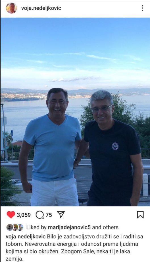 Voditelj “Zvezdi Granda” Voja Nedeljković oprostio se od Saše Popovića emotivnom rečima na Instagramu. On je objavio i njihovu zajedničku fotografiju sa mora.