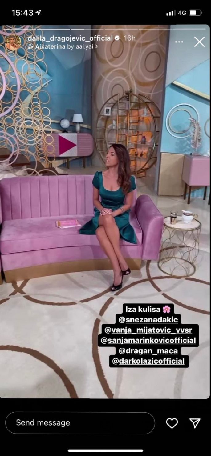 Osim nje, u studiju su se našli i pevač Darko Lazić, glumac Dragan Marinković Maca, pevačica Vanja Mijatović i novinarka Snežana Dakić.