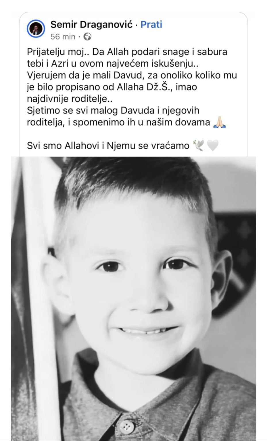 Posebno potresna činjenica je da je Mahir bio kum mladom Davudu, što ovu tragediju čini još bolnijom za njegove prijatelje i kolege.