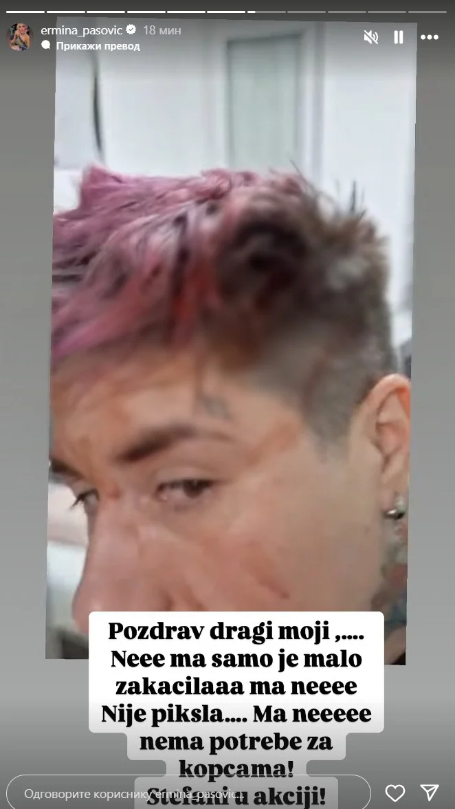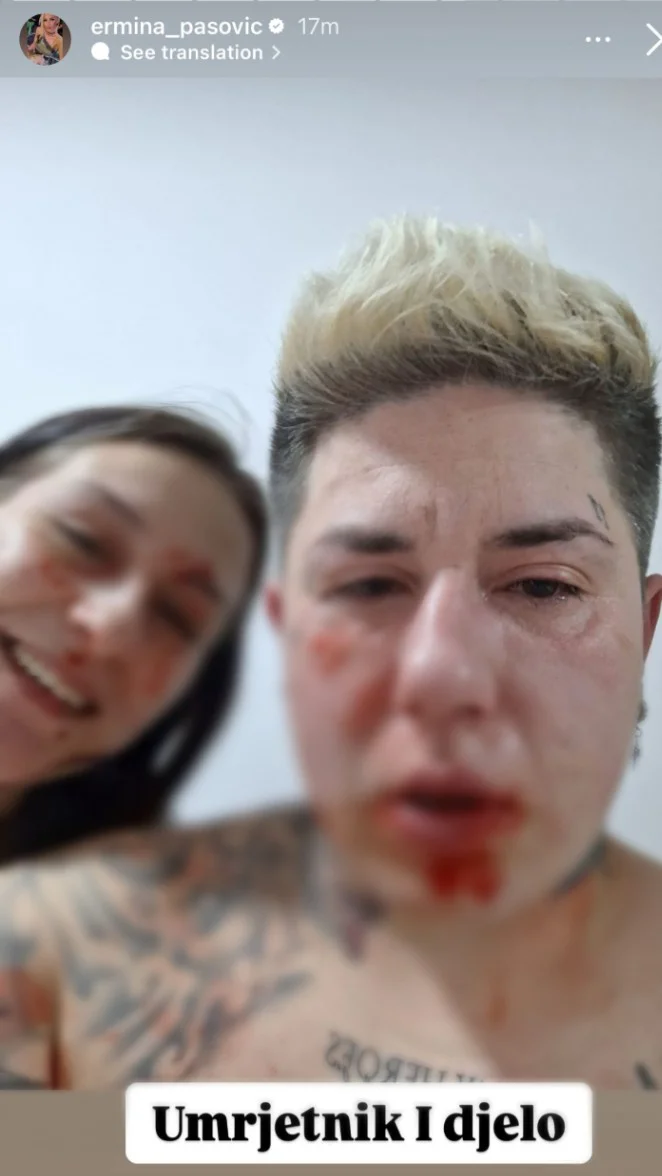 Ermina je iz Matorinog telefona putem svog storija na društvenoj mreži Instagram okačila nekoliko fotografija na kojima se vidi da je lice Tomićeve krvavo, glava i usta otvorena, a oko modro.