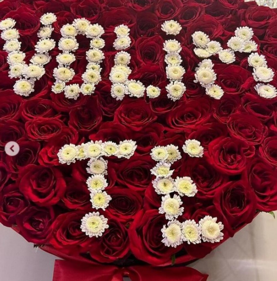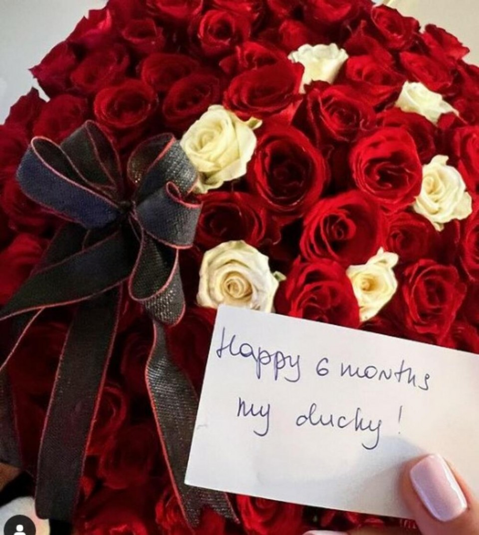 “Volim te”, ispisano je od bijelih ruža u buketu, a nema sumnje da pjevačica uživa u novoj vezi.