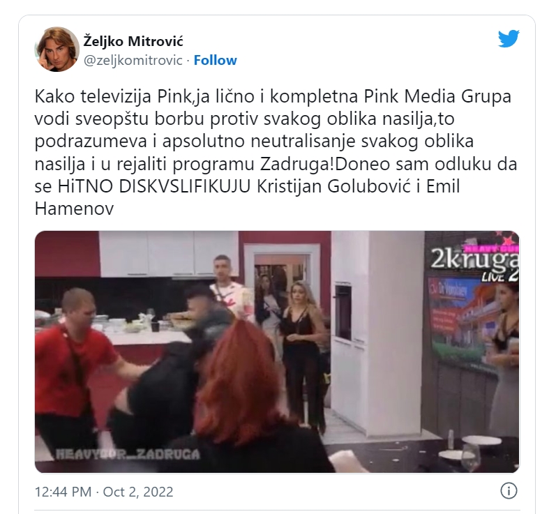 U ranim jutarnjim časovima, Kristijan i Emil su pesničili Uroša, a nešto kasnije je vlasnik TV Pink doneo hitnu odluku da se njih dvojica momentalno diskvalifikuju.