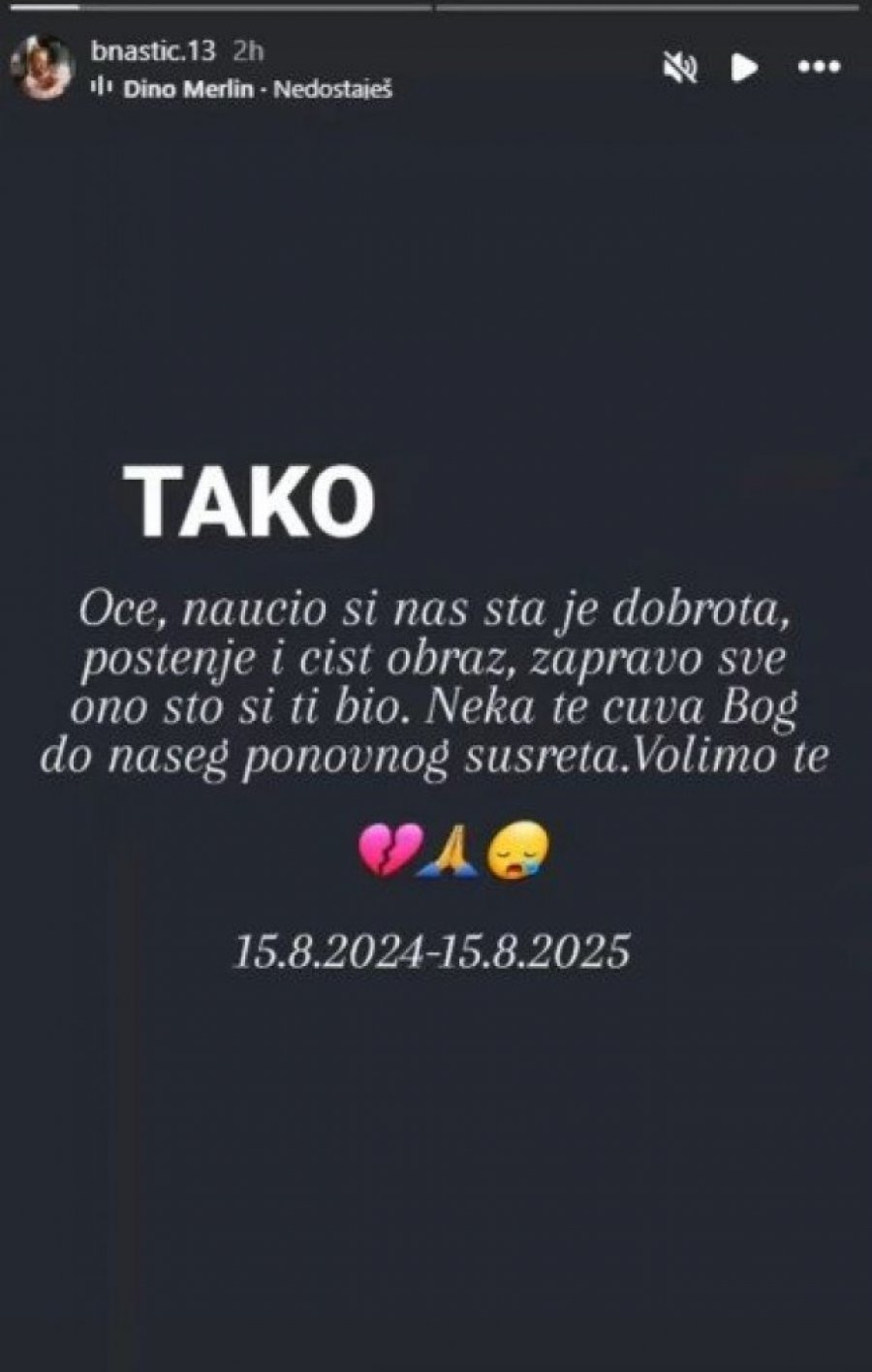 – Oče, naučio si nas šta je dobrota, poštenje i čist obraz, zapravo sve ono što si ti bio. Neka te čuva Bog do našeg ponovnog susreta. Volim te – napisala je Danijela Nastić.