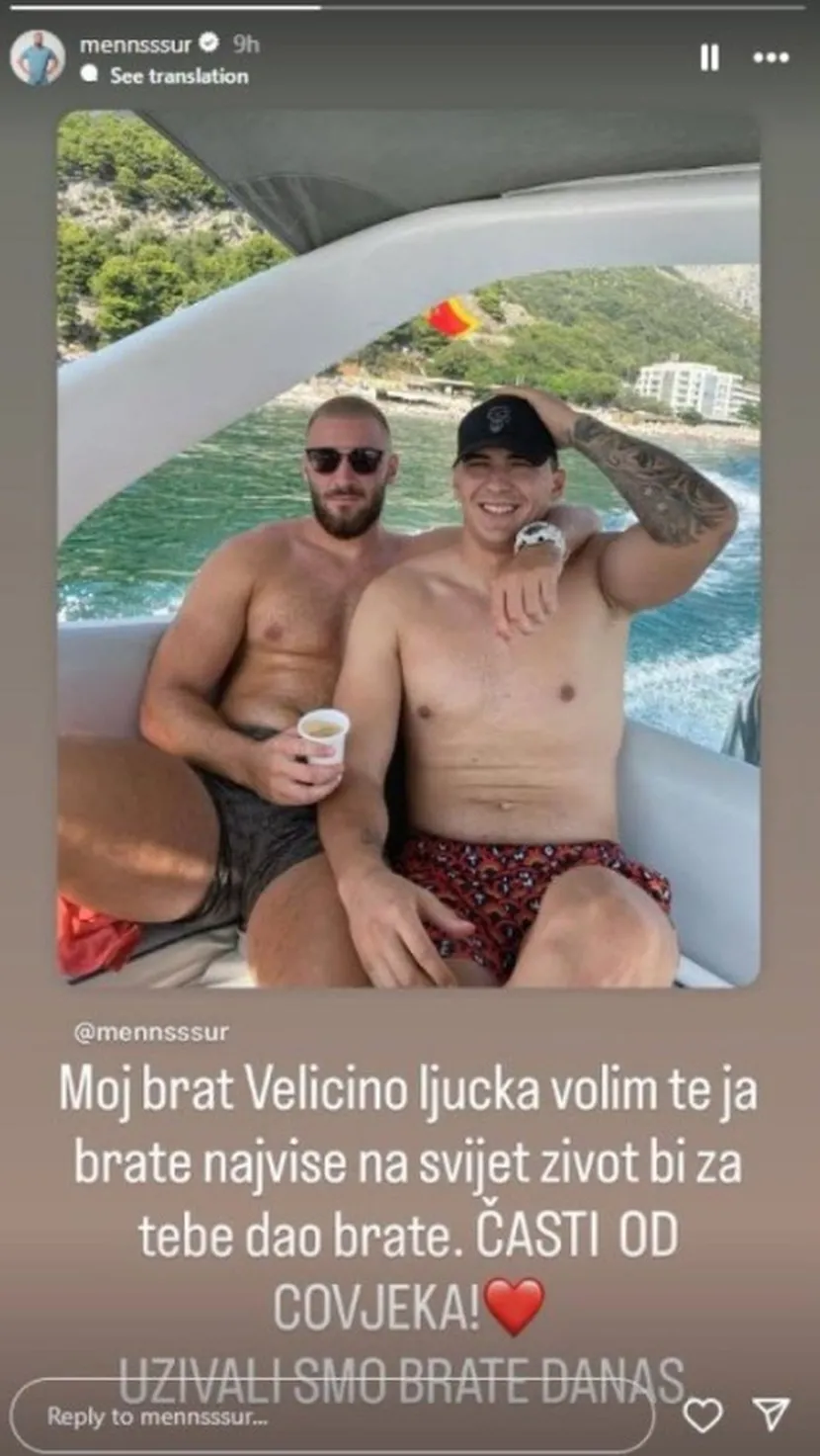Moj brat! Veličino ljudska, volim te ja, brate, najviše na svetu, život bih za tebe dao, brate! Časti od čoveka! Uživali smo, brate, danas – napisao je Mensur.