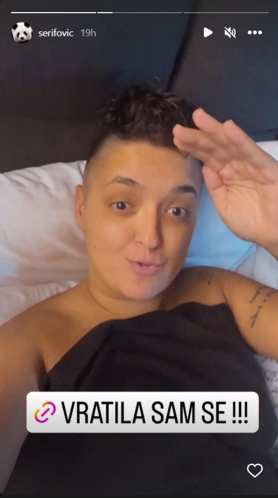 Međutim, ono što je izazvalo posebnu pažnju jeste to što je Šerifovićeva snimala bez ičega na sebi, dok je grudi prekrila čaršavom.