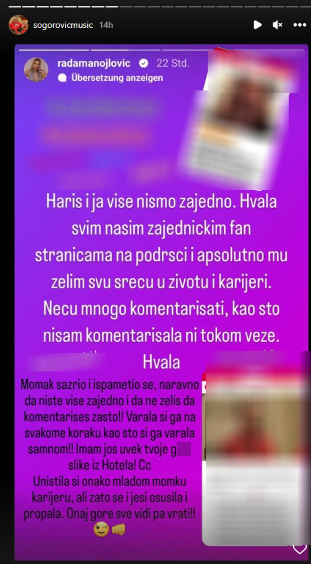 To je upravo slučaj naše pevačice Rade Manojlović koju očigledno opseda fan, pa kako bi pokušao da privuče pažnju na sebe služeći se gnusnim tvrdnjama i uvredama.