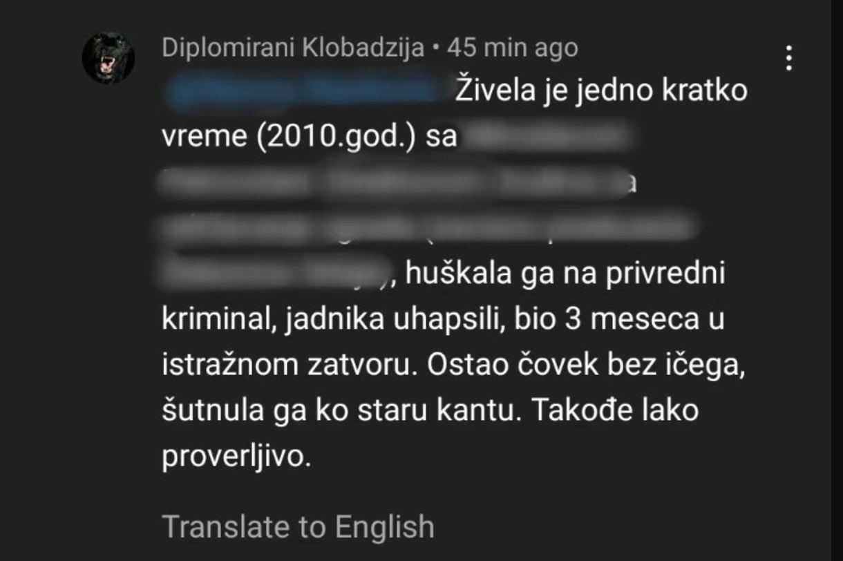 Živela je jedno vreme sa jednim čovekom. Huškala ga na privredni kriminal, jadnika uhapsili. Ostao čovek bez ičega, šutnula ga kao staru kantu. Takođe, lako proverljivo – tvrdi osoba koja je napisala tvit koji je izazvao polemiku na spomenutoj društvenoj mreži.